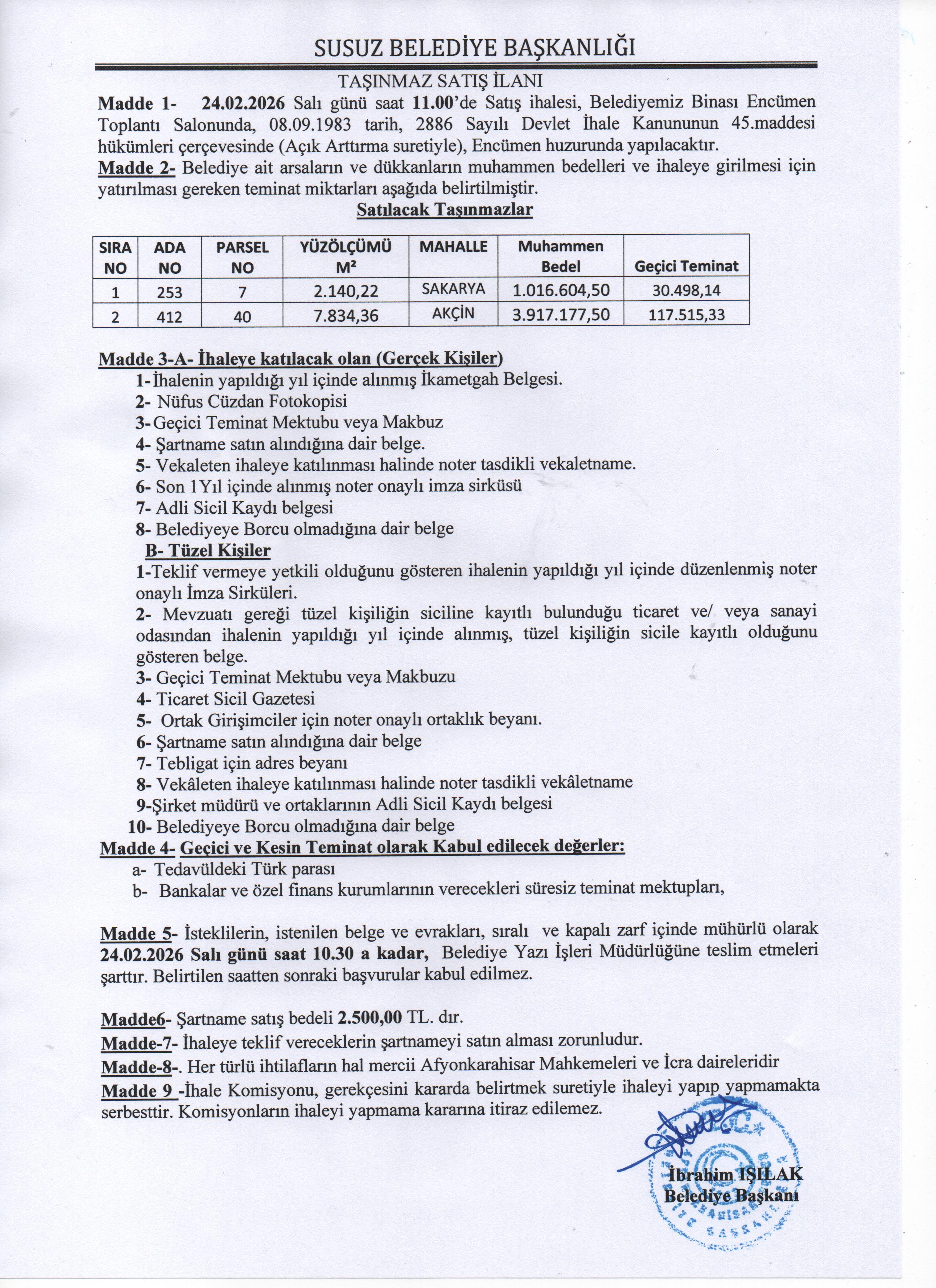 TAŞINMAZ SATIŞ İLANI 24 Şubat 2026, 11:00